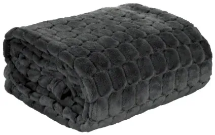 Koc Zoe z miękkiego i delikatnego w dotyku mikrowłókna typu flano zdobi na całej powierzchni symetryczny wzór z efektem 3D
